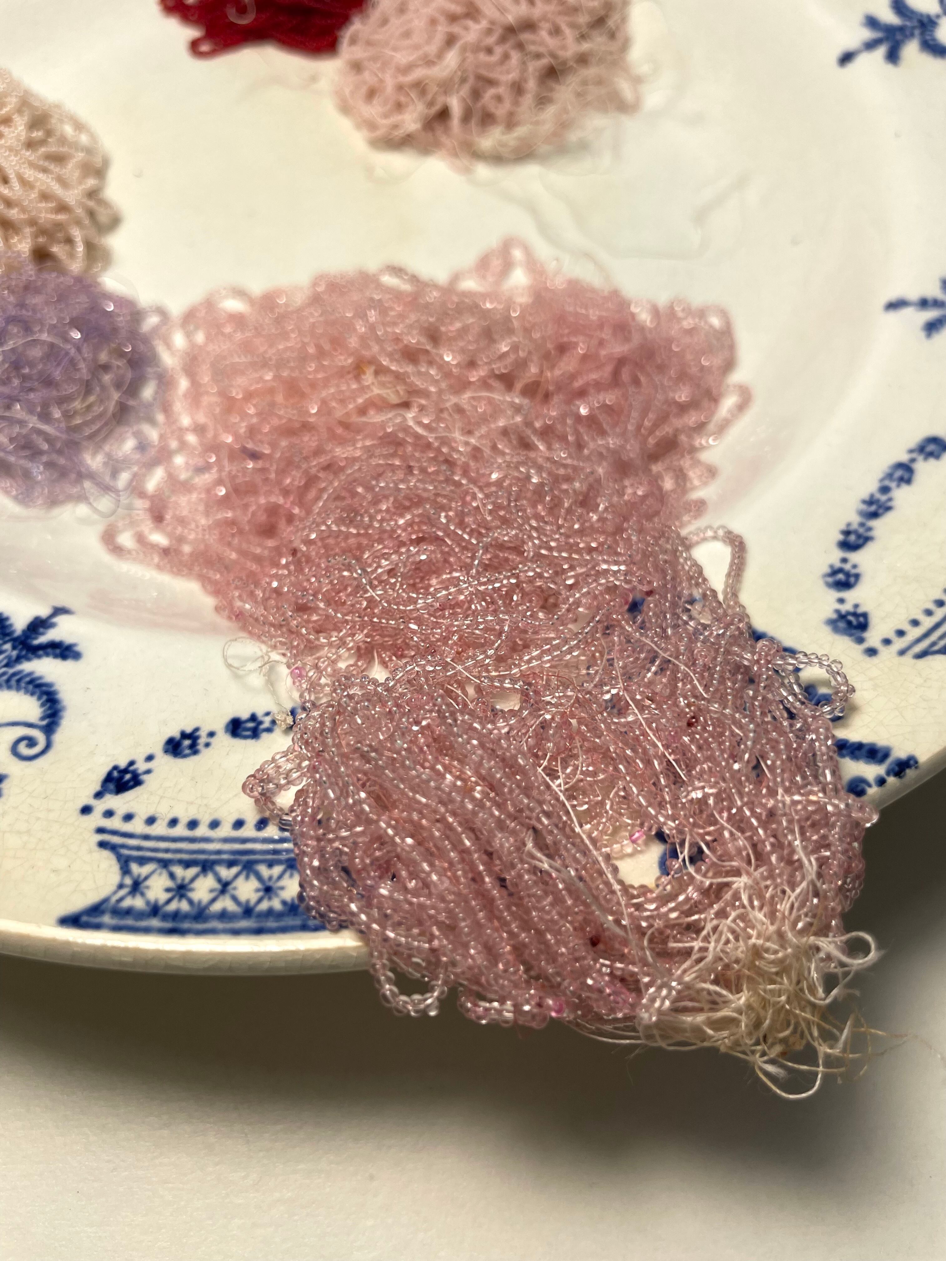 マダムの叔母様が当時ガラスシードビーズを使用した刺繍装飾バッグの
