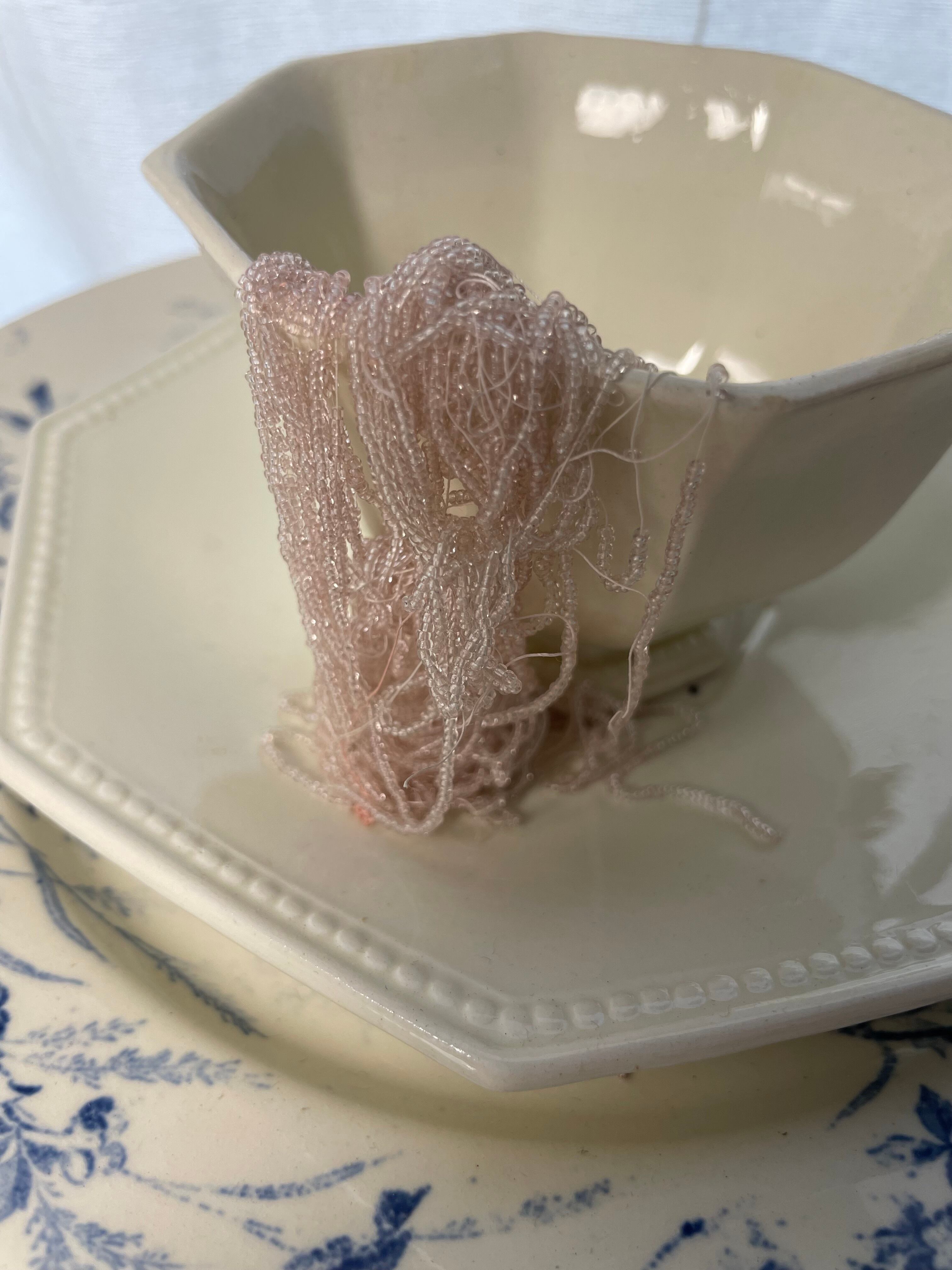 ref : Beads 259 アンティーク・ローズクウォーツ・ガラスビーズ