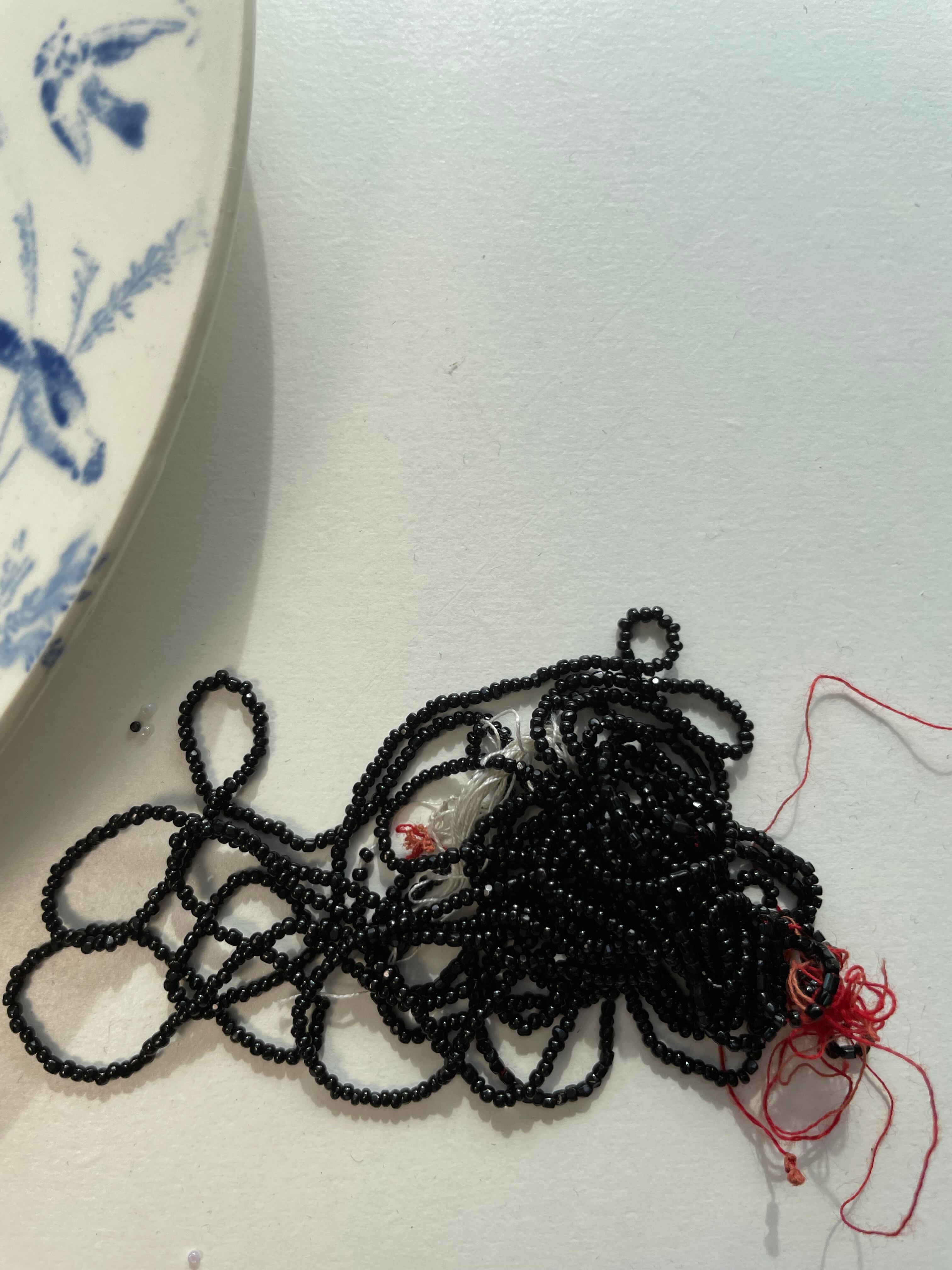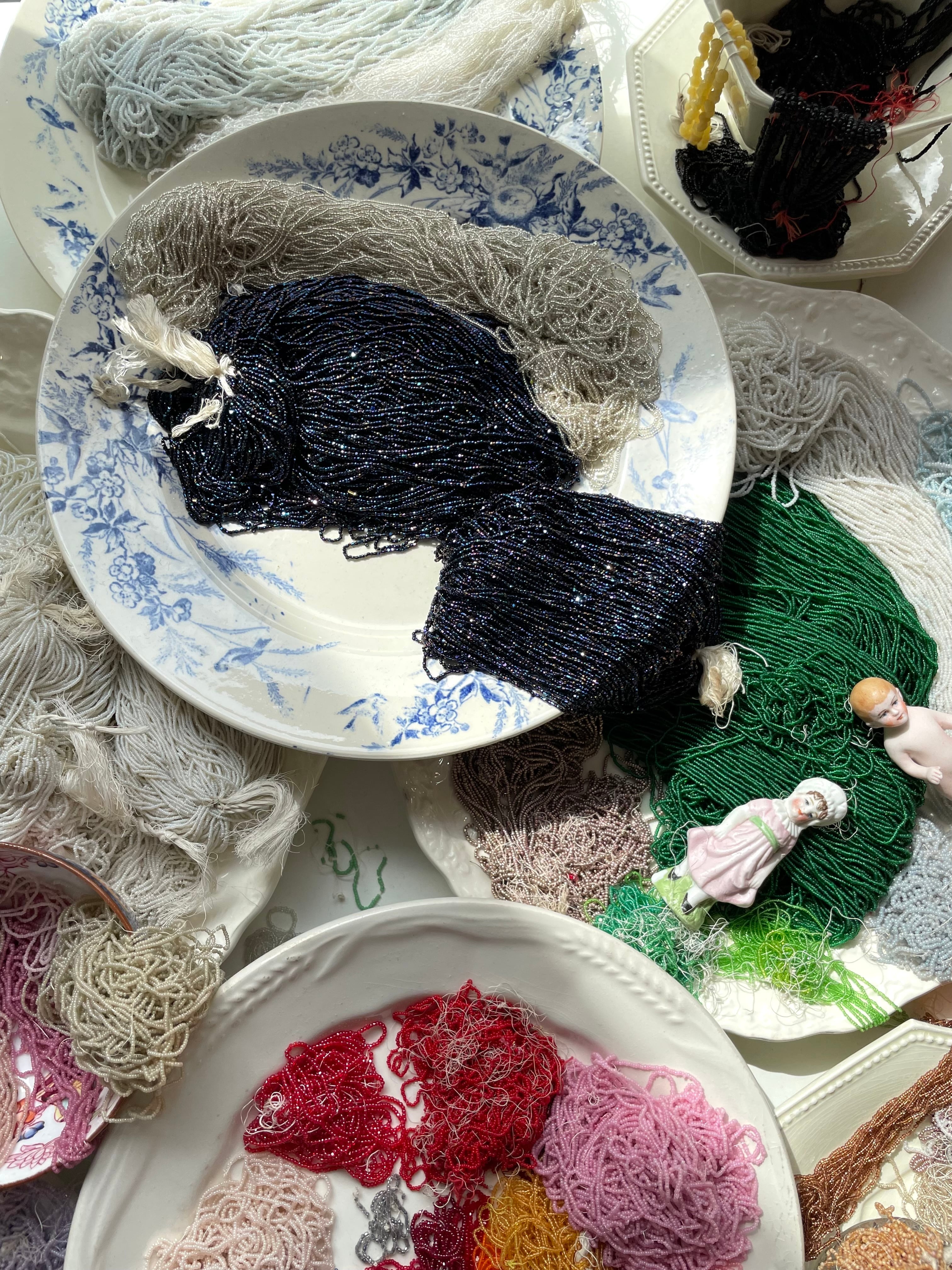マダムの叔母様が当時ガラスシードビーズを使用した刺繍装飾バッグの