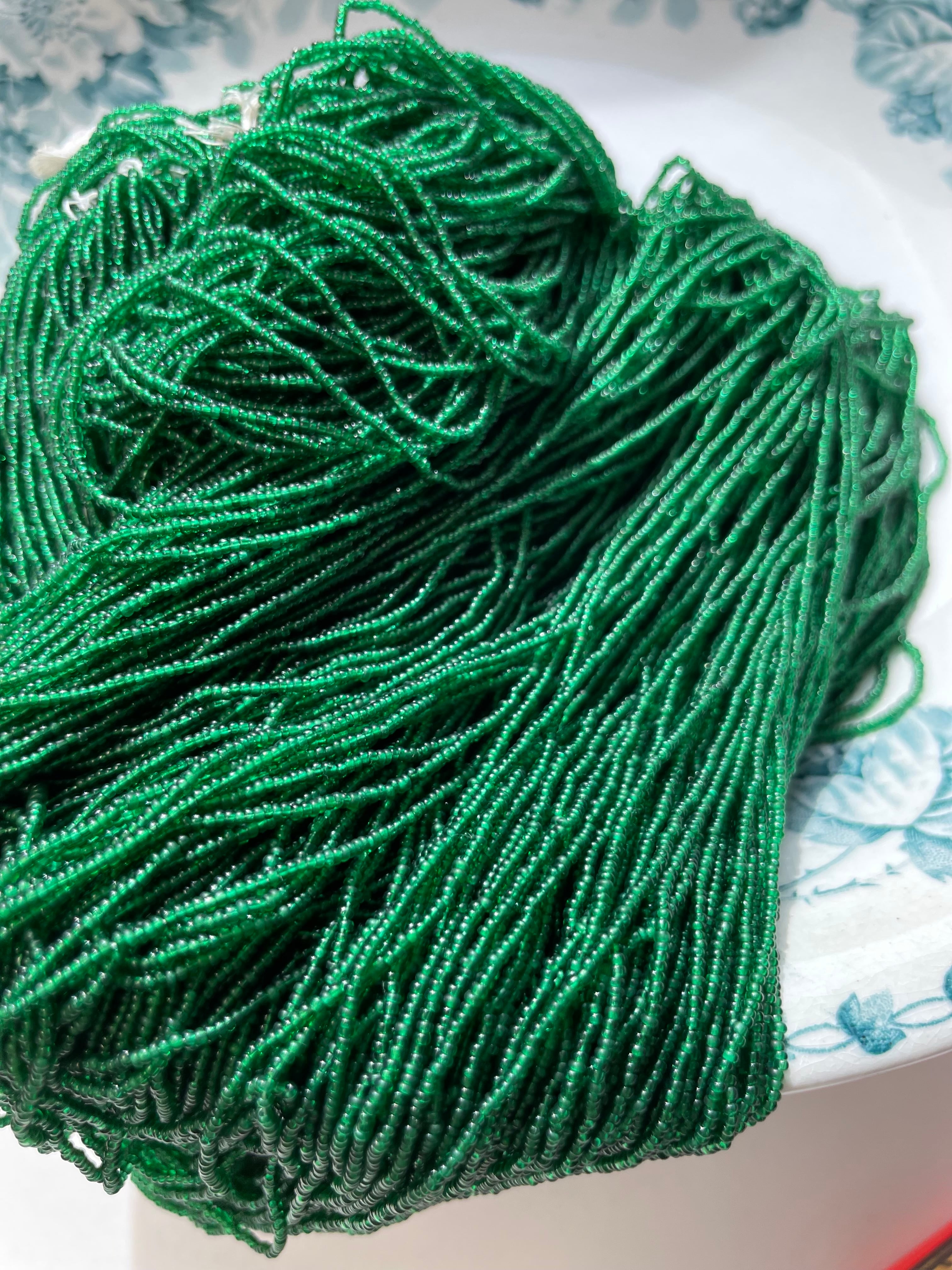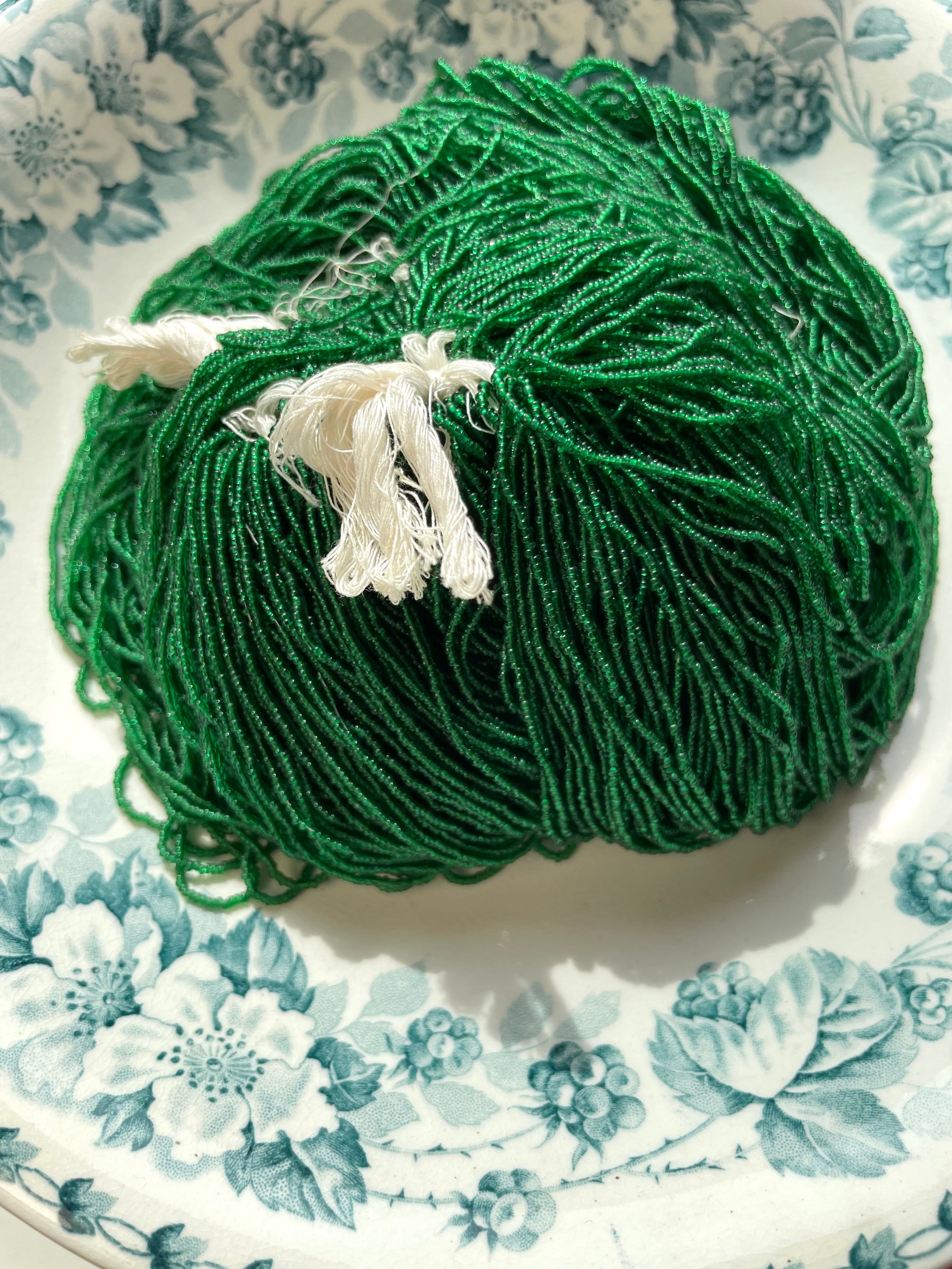 ref : Beads 214 アンティーク・マイクロ・エメラルド・ガラスビーズ