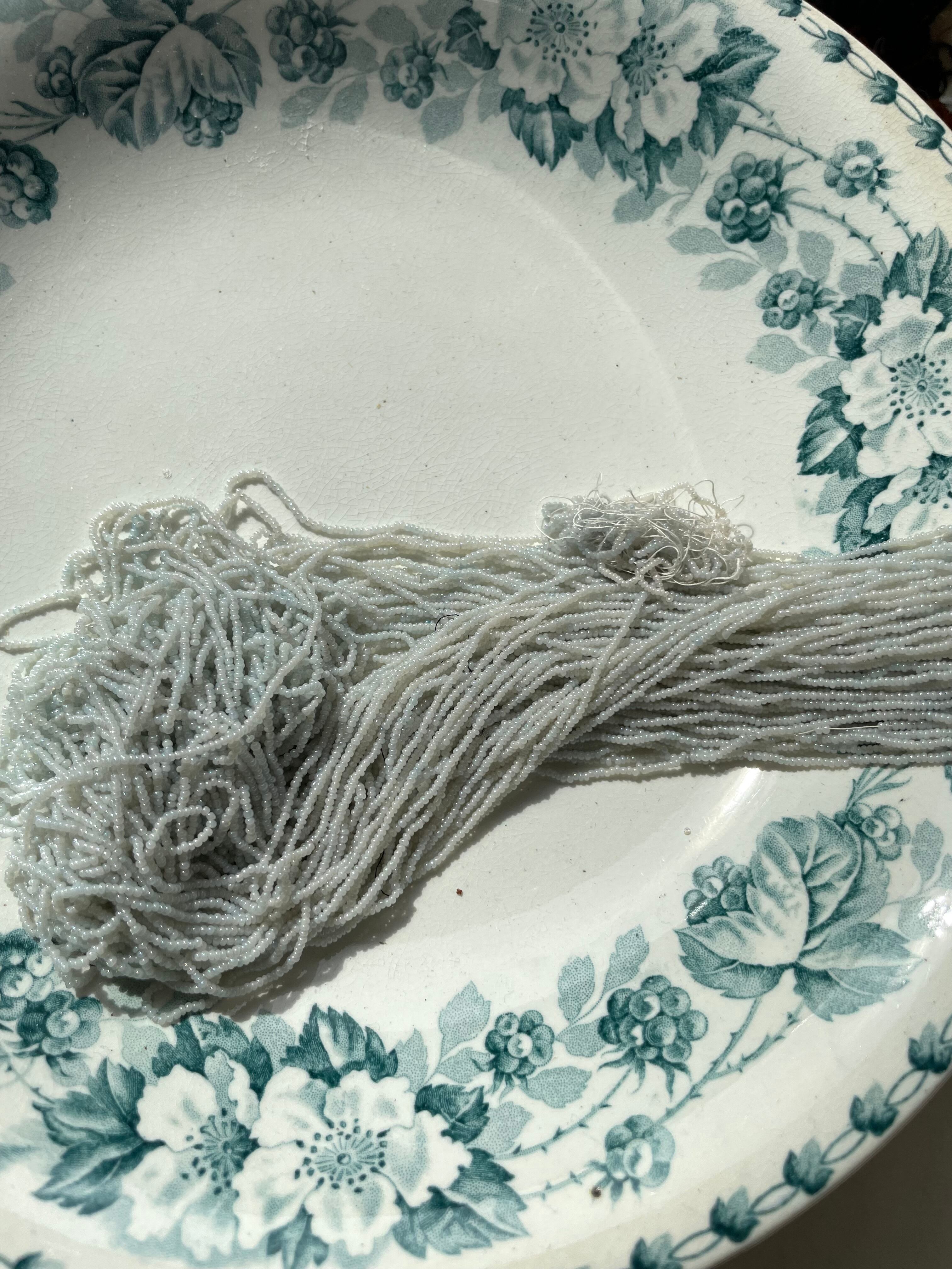 ref : Beads 200 アンティーク・乳白色・淡いブルーのガラスビーズ