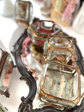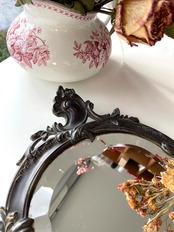 重厚感のある面取り鏡と優美な曲線を活かしたロカイユのフレーム装飾。