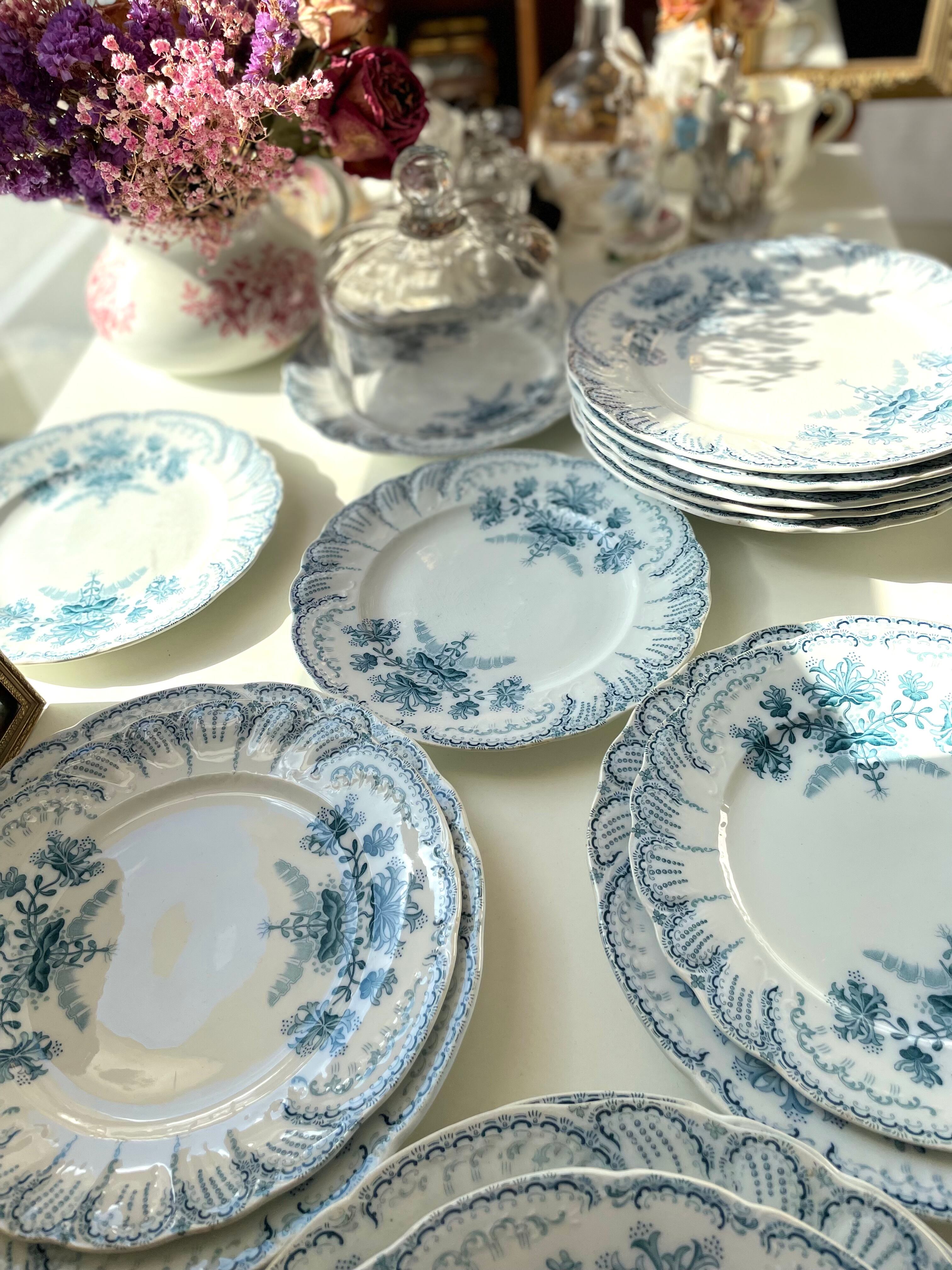 地色は白。ブルーとのコントラスが清々しい印象。カオリンや長石が多く加えられた陶器(半陶半磁器)をTerre de fer テール・ド・フェールと呼びます。