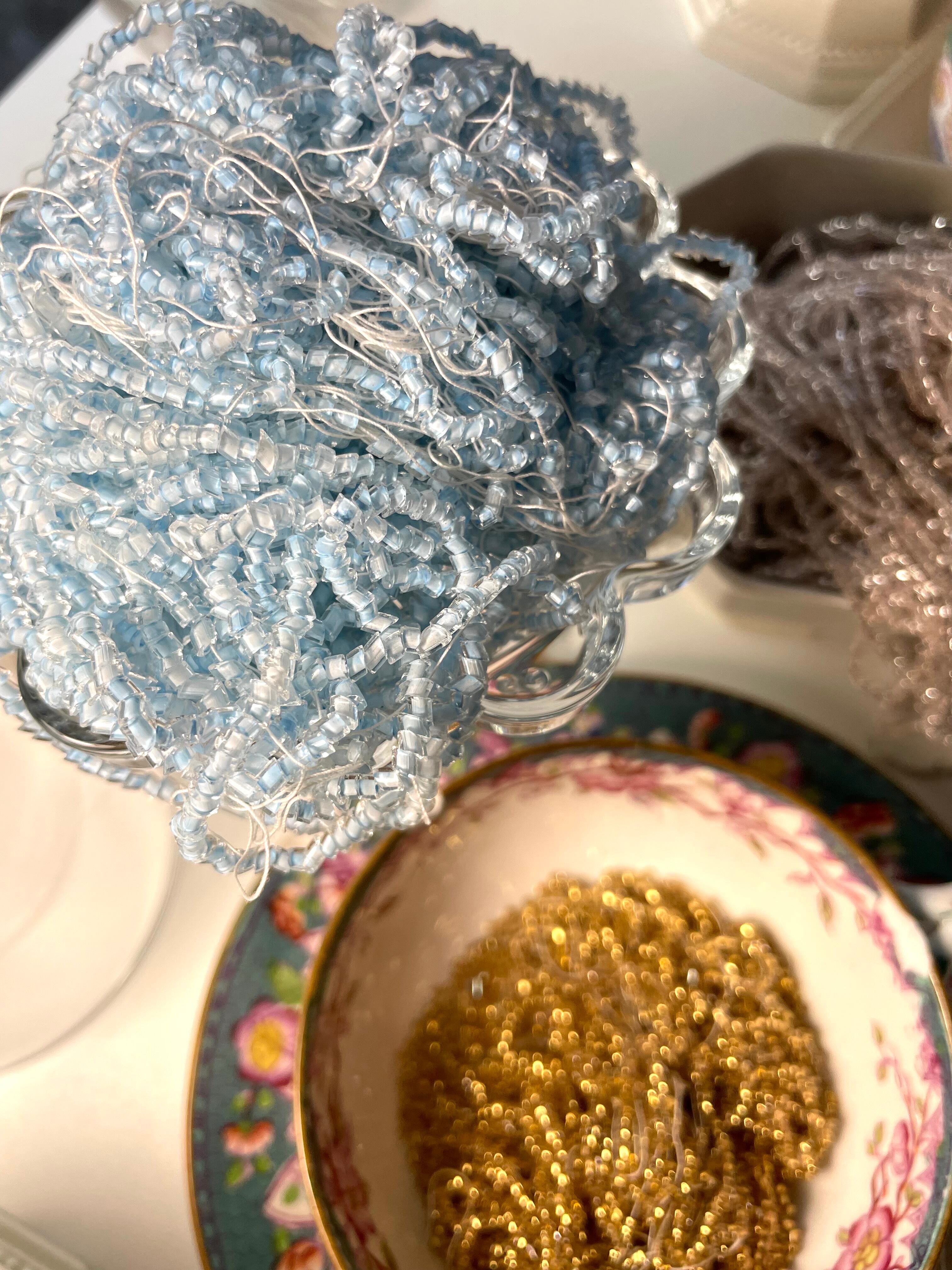 不揃いなビーズが現行品にはない素敵な作品を生み出します。