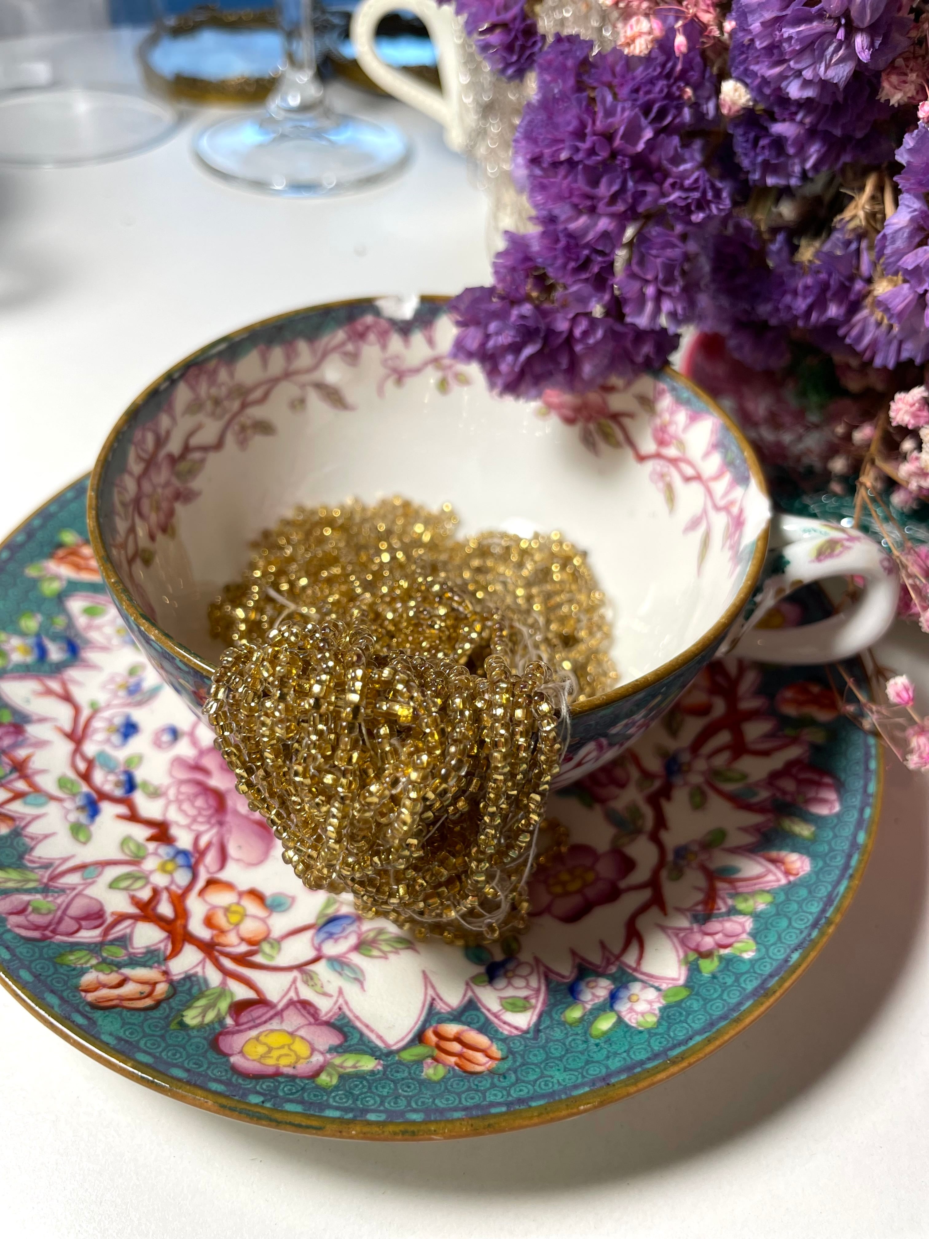 不揃いなビーズが現行品にはない素敵な作品を生み出します。