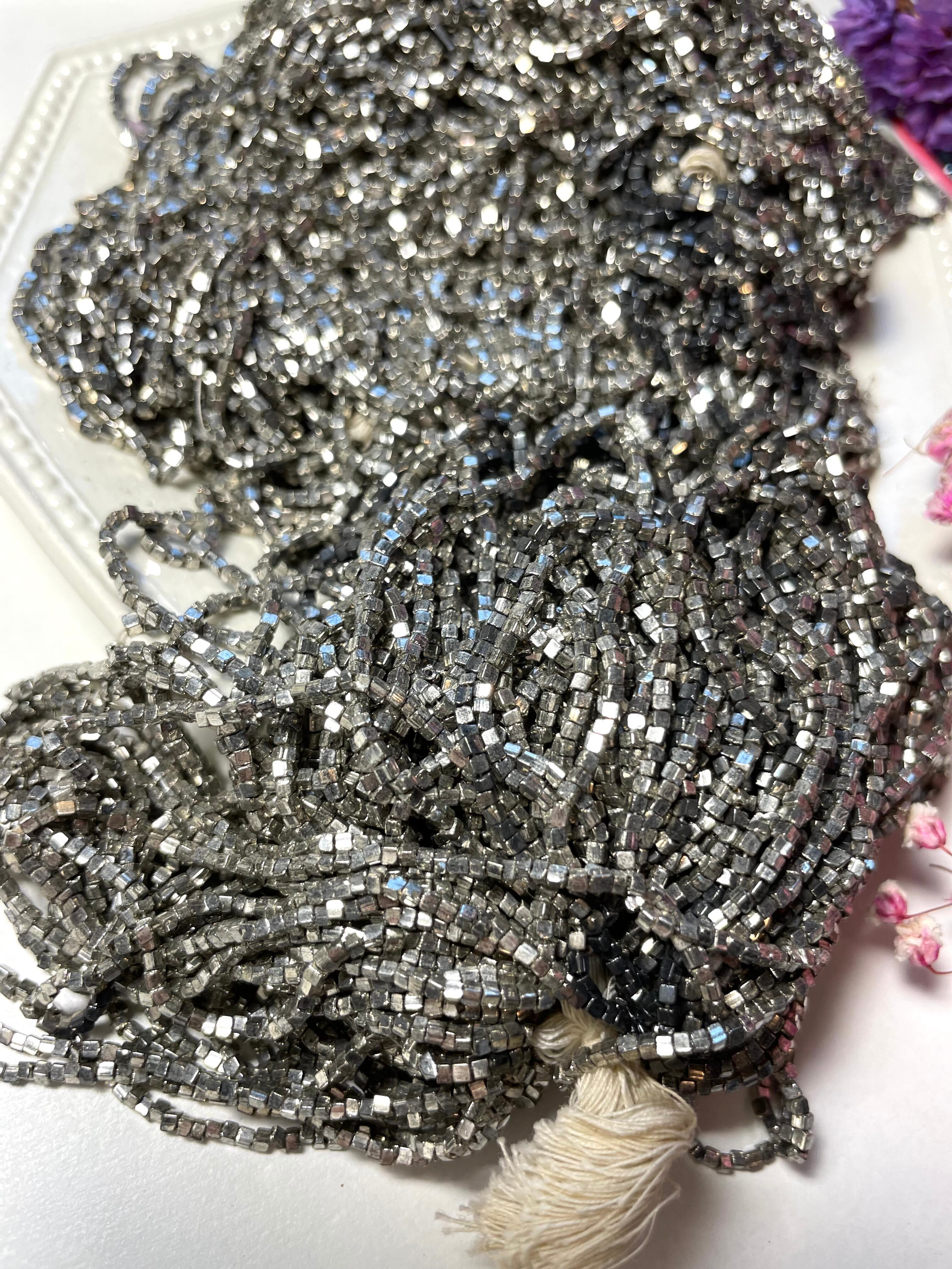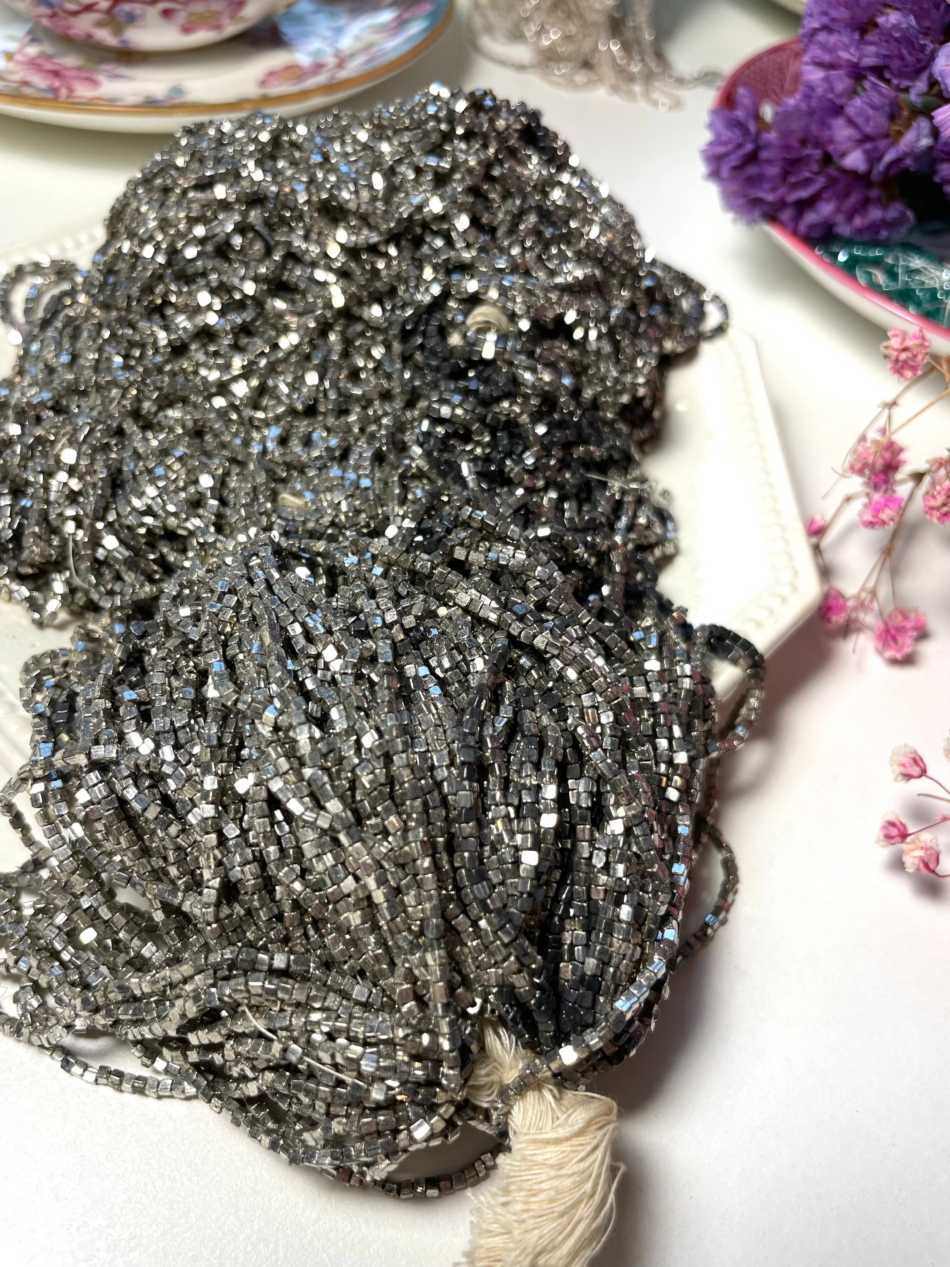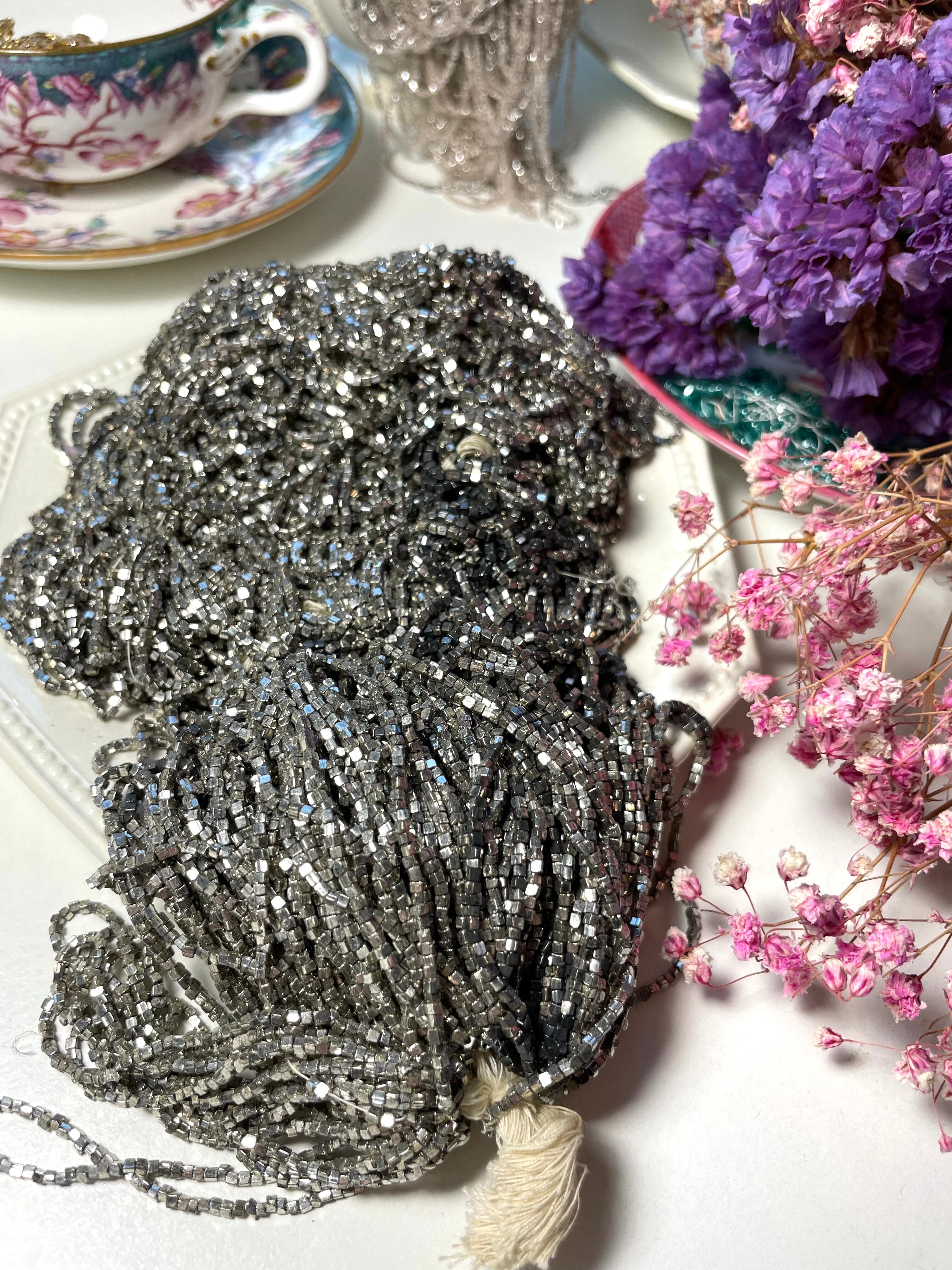 ref : Beads 301 アンティーク・シルバーメタリックキューブ・ガラスビース