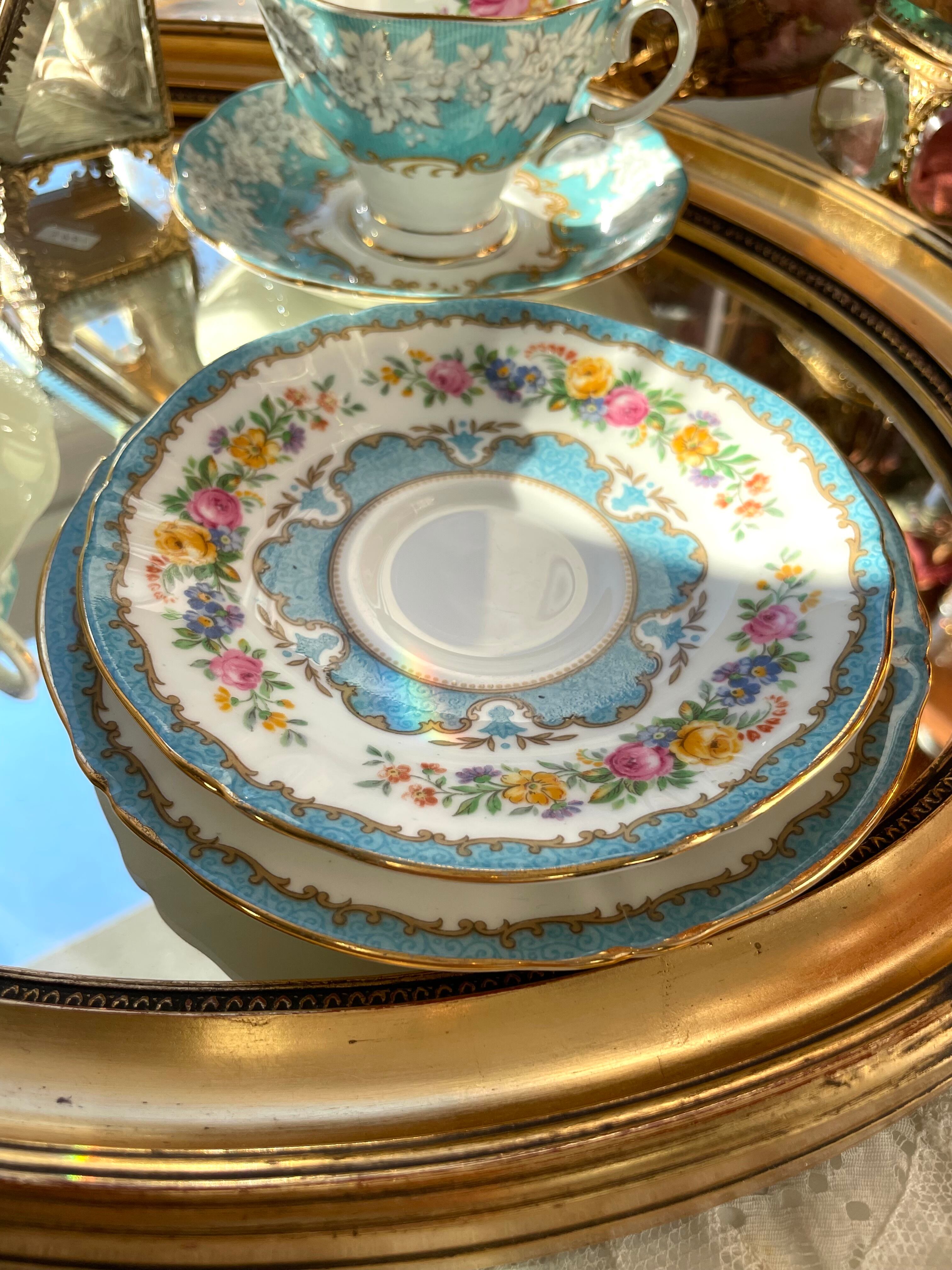 華やかなロココの花柄が美しい華やかなアンティークのソーサーの2枚セット。
