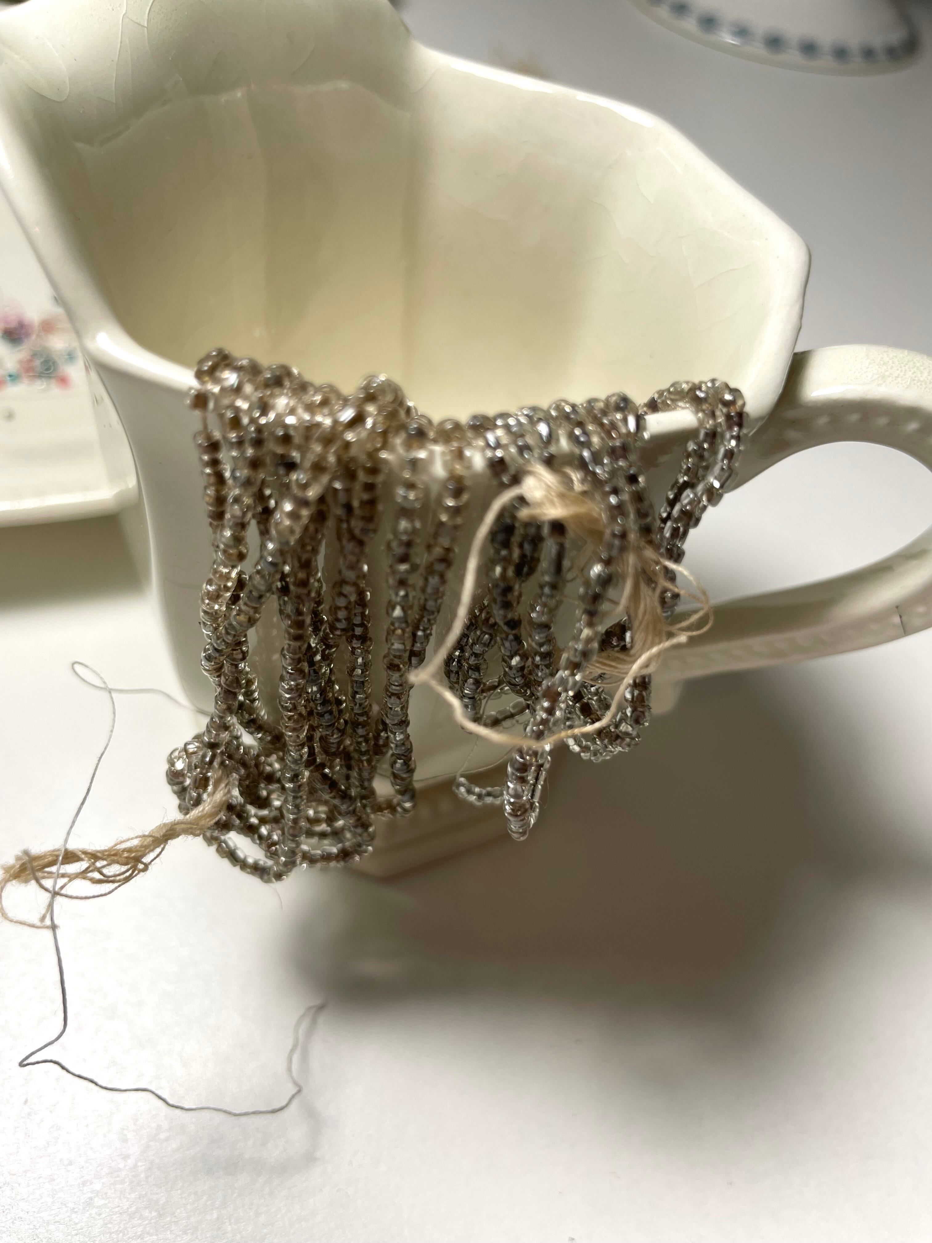 【送料込み表示】ref : Beads 487 アンティーク・シルバー・ガラスビーズ