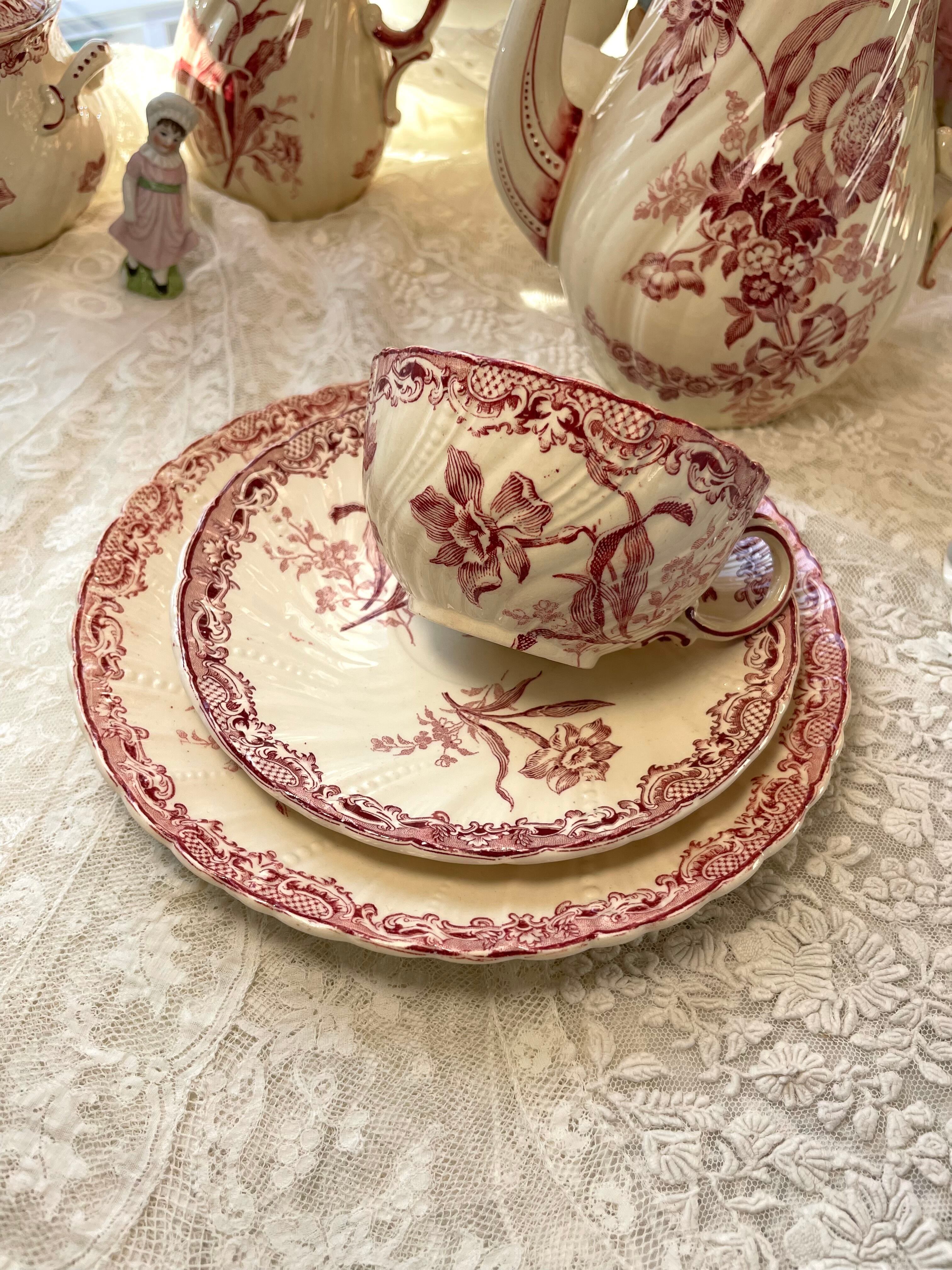 ref : 2058C アンティーク・ティーカップ&ソーサートリオ Sarreguemines FONTANGES